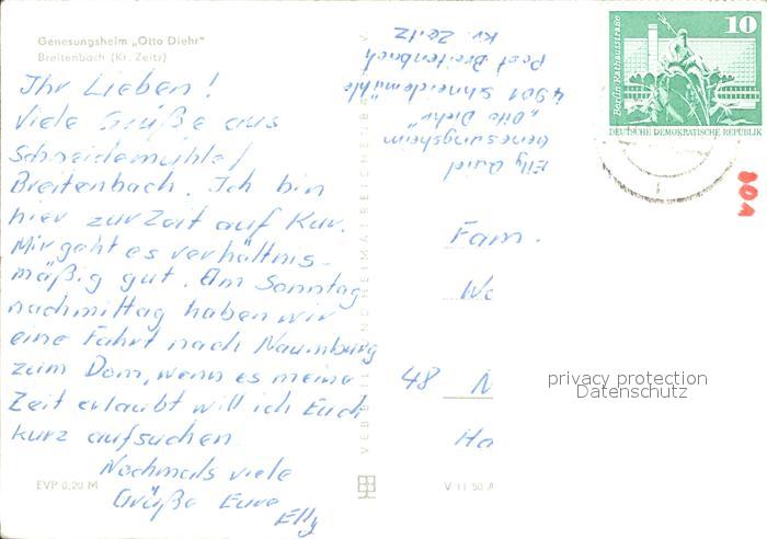 72064257 alte Postkarte Breitenbach Zeitz Genesungsheim Otto Diehr postalisch gelaufen KatCode: 11110015084045