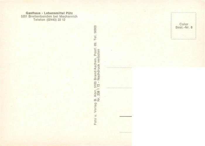 73891686 Breitenbenden Ehrenmal Panorama Gasthaus Lebensmittel Puetz postalisch nicht gelaufen Erhaltung siehe scans [FriedD77] KatCode: 11110005366028