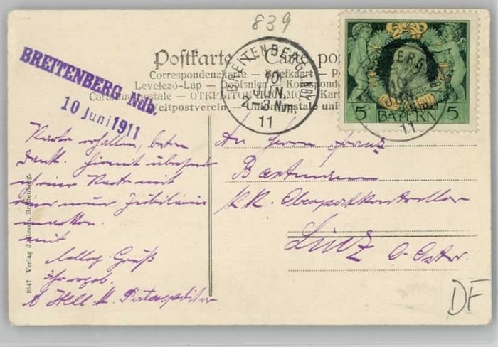 40222661 Breitenberg Niederbayern Gasthof Post x 1911 KatCode 11110009275118