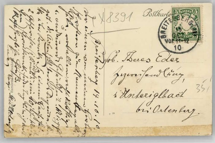 40222194 Breitenberg Niederbayern x 1910 KatCode 11110009275118