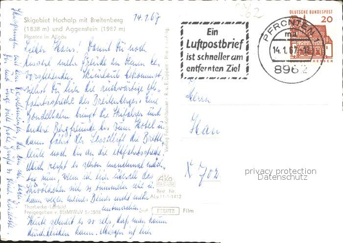 71936637 alte Postkarte Breitenberg Oesterreich mit Skigebiet Hochalp und Aggenstein postalisch gelaufen Erhaltung siehe scans KatCode: 11390