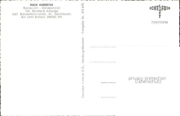 72146819 Breitenborn-Luetzel Fliegeraufnahme Haus Hubertus postalisch nicht gelaufen Erhaltung siehe scans KatCode: 11110006435003