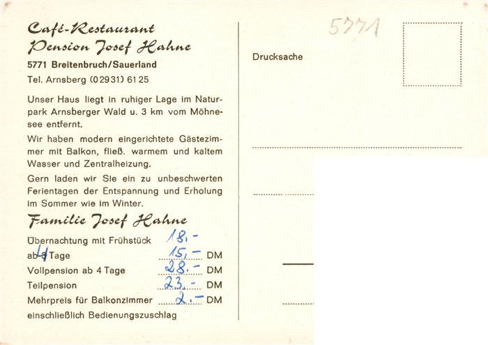 73942829 Breitenbruch Arnsberg Cafe Restaurant Josef Hahne postalisch nicht gelaufen Erhaltung siehe scans [WerneD78] KatCode: 11110005958004