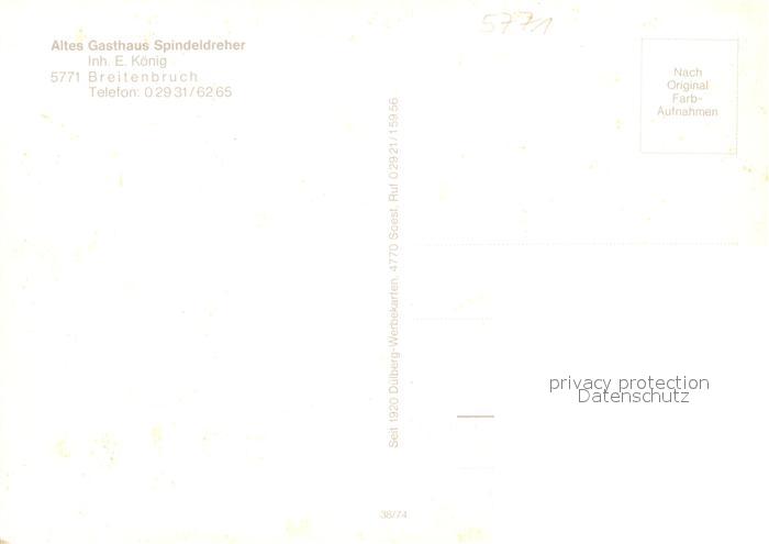 73160455 Breitenbruch Arnsberg Gasthaus Spindeldreher postalisch nicht gelaufen Erhaltung siehe scans [LiesaD40] KatCode: 11110005958004