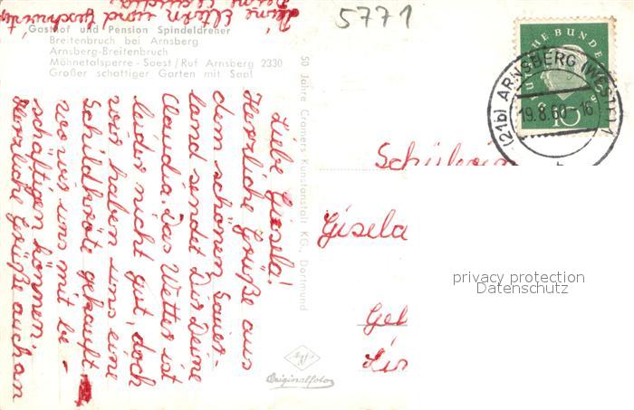 73695250 alte Postkarte Breitenbruch Arnsberg Gasthof Pension Spindeldreher postalisch gelaufen Erhaltung siehe scans [WerneD78] KatCode: 11110005958004