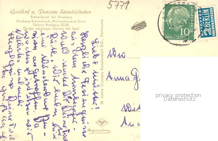 73695249 alte Postkarte Breitenbruch Arnsberg Haus Spindeldreher Gastraeume Arnsberger Wald postalisch gelaufen Erhaltung siehe scans [WerneD78] KatCode: 11110005958004