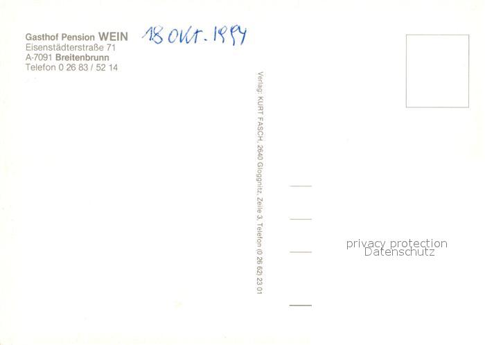 72949578 Breitenbrunn Burgenland Gasthof Wein postalisch nicht gelaufen Erhaltung siehe scans [NatalD47] KatCode: 11390112010301