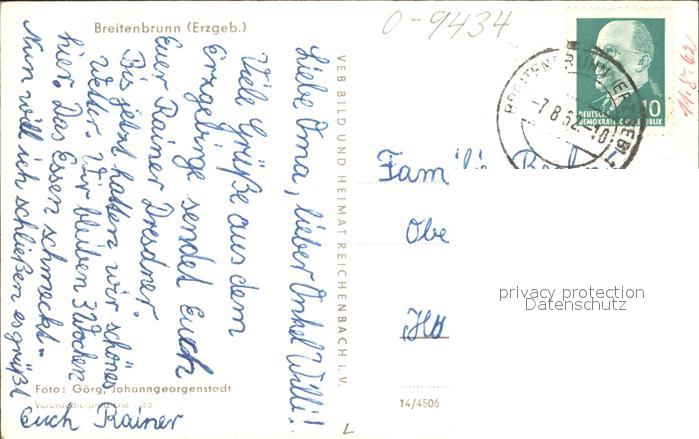 71925135 alte Postkarte Breitenbrunn Erzgebirge Ortsansicht postalisch gelaufen Erhaltung siehe scans KatCode: 11110014191090
