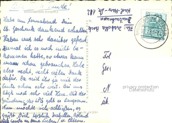 71986709 alte Postkarte Breitenbrunn Erzgebirge Panorama postalisch gelaufen Erhaltung siehe scans KatCode: 11110014191090