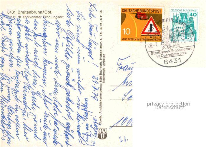 72918473 alte Postkarte Breitenbrunn Oberpfalz Neumarkt Panorama Erholungsort Felsen postalisch gelaufen Erhaltung siehe scans [FriedD77] KatCode: 11110009373115