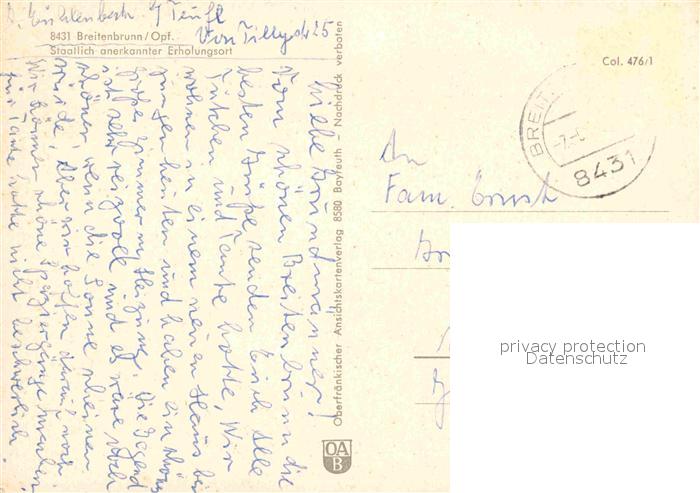 72907297 alte Postkarte Breitenbrunn Oberpfalz Neumarkt Teilansicht postalisch gelaufen Erhaltung siehe scans [AndreD76] KatCode: 11110009373115