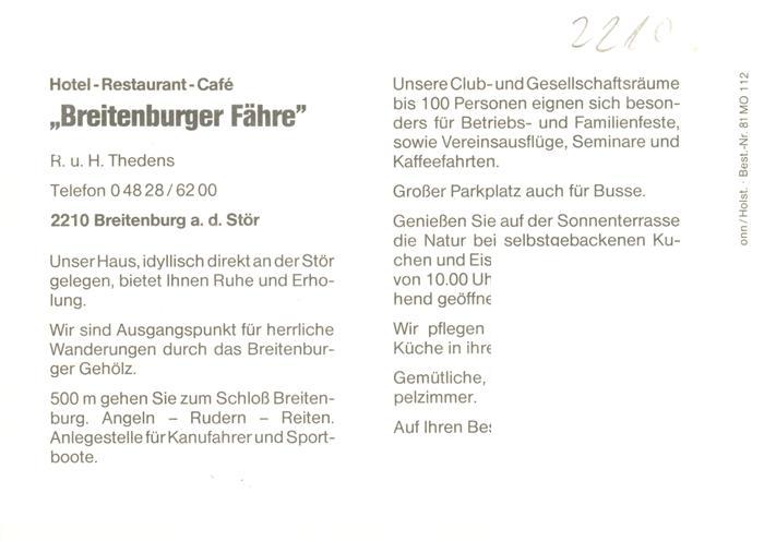 73884792 Breitenburg Hotel Restaurant Breitenburger Faehre Gastraeume Terrasse postalisch nicht gelaufen Werbekarte (keine Postkarte) Erhaltung siehe scans [FriedD77] KatCode: 11110001061017