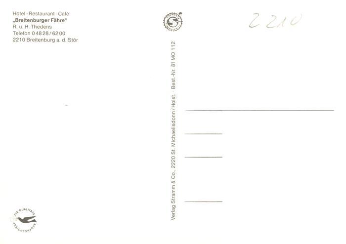 73885025 Breitenburg Hotel Restaurant Cafe Breitenburger Faehre Gastraeume Terrasse postalisch nicht gelaufen Erhaltung siehe scans [FriedD77] KatCode: 11110001061017