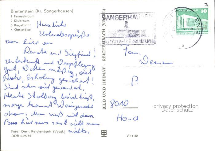 72400811 alte Postkarte Breitenstein Suedharz Erholungsheim Mehrzweckgebaeude Kegelbahn %re postalisch gelaufen Erhaltung siehe scans KatCode: 11110015087275