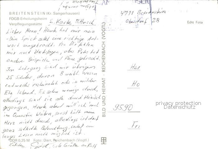 72118647 alte Postkarte Breitenstein Suedharz FDGB Erholungshheim postalisch gelaufen Erhaltung siehe scans KatCode: 11110015087275