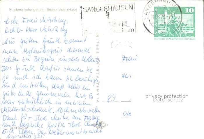 72168884 alte Postkarte Breitenstein Suedharz Kindererholungsheim postalisch gelaufen Erhaltung siehe scans KatCode: 11110015087275
