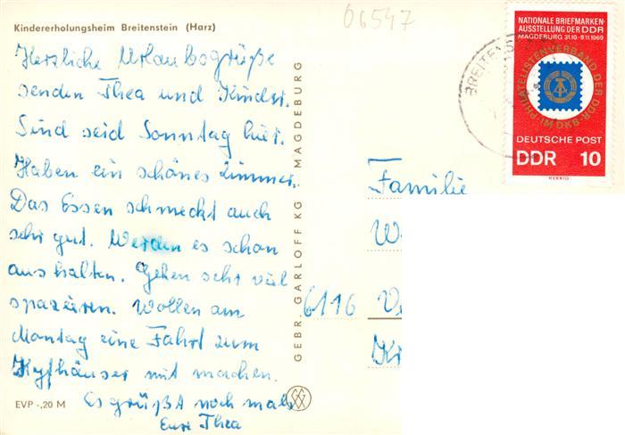 73883080 alte Postkarte Breitenstein Suedharz Kindererholungsheim postalisch gelaufen Erhaltung siehe scans [FriedD77] KatCode: 11110015087275