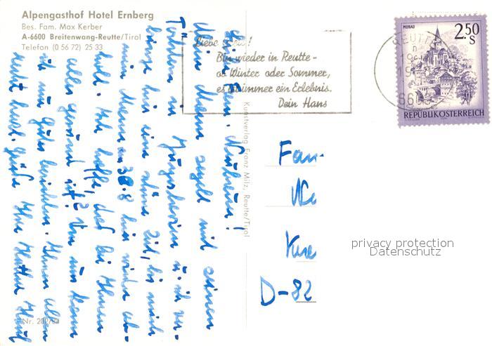 13215878 alte Postkarte Breitenwang Tirol Gasthaus Hotel Ernberg postalisch gelaufen Erhaltung siehe scans [LiesaD40] KatCode: 11390331070805