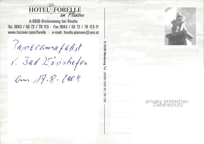 72476694 Breitenwang Tirol Hotel Forelle am Plansee Kapelle Radfahrer Taucher Fahrgastschiff postalisch nicht gelaufen Erhaltung siehe scans KatCode: 11390331070805