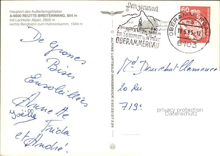 72411780 alte Postkarte Breitenwang Tirol mit Lechtaler Alpen Bergbahn zum Hahnenkamm Fliegeraufnahme postalisch gelaufen Erhaltung siehe scans KatCode: 11390331070805