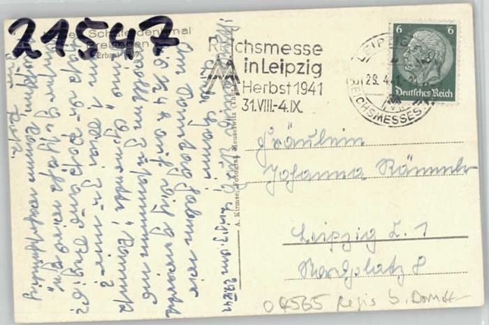 70028118 alte Postkarte Breitingen Schaeferdenkmal postalisch gelaufen KatCode: 11110008425024