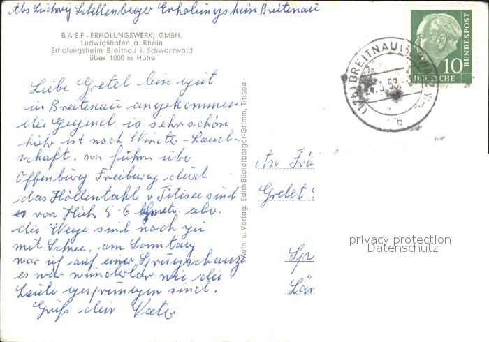 71838095 alte Postkarte Breitnau BASF Erholungswerk Breitnau postalisch gelaufen Erhaltung siehe scans KatCode: 11110008315016