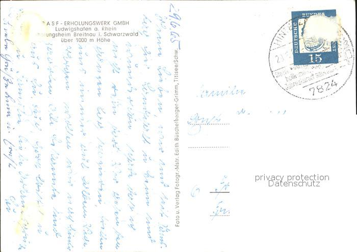 72030436 alte Postkarte Breitnau BASF-Erholungswerk GmbH postalisch gelaufen Erhaltung siehe scans KatCode: 11110008315016