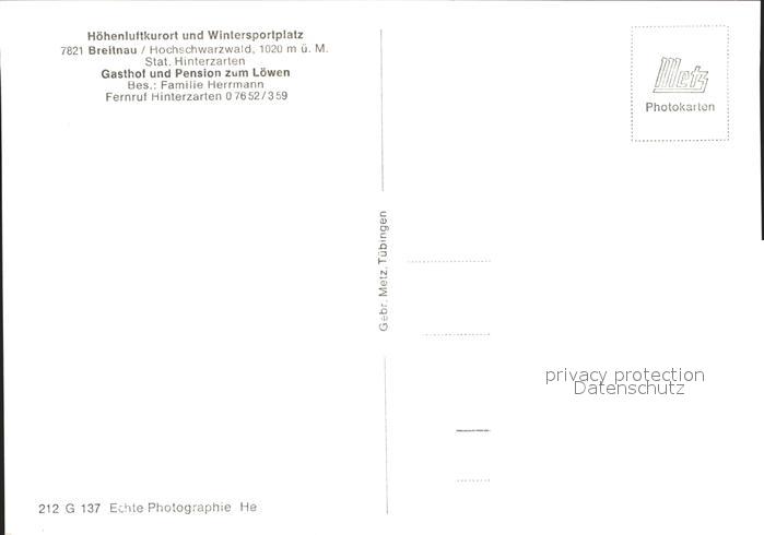 41759831 Breitnau Gasthaus Pension zum Loewen Auto postalisch nicht gelaufen Erhaltung siehe scans KatCode: 11110008315016