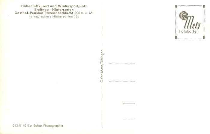 73900146 Breitnau Gasthof Pension Ravennaschlucht Hoehenluftkurort im Schwarzwald postalisch nicht gelaufen Erhaltung siehe scans [FriedD77] KatCode: 11110008315016