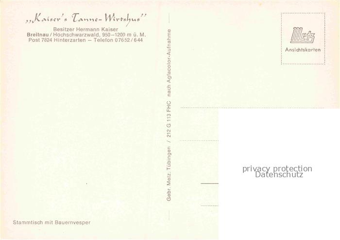 74125096 Breitnau Hinterzarten Schwarzwald BW Kaiser’s Tanne Wirtshus postalisch nicht gelaufen Erhaltung siehe scans [WerneD78] KatCode: 11110008315016