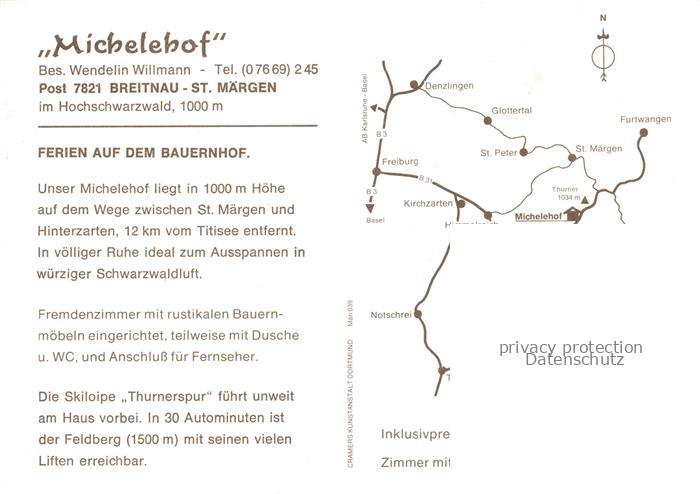 74022791 Breitnau Hinterzarten Schwarzwald BW Michelehof Gastraum Fremdenzimmer postalisch nicht gelaufen Werbekarte (keine Postkarte) Erhaltung siehe scans [FriedD77] KatCode: 11110008315016