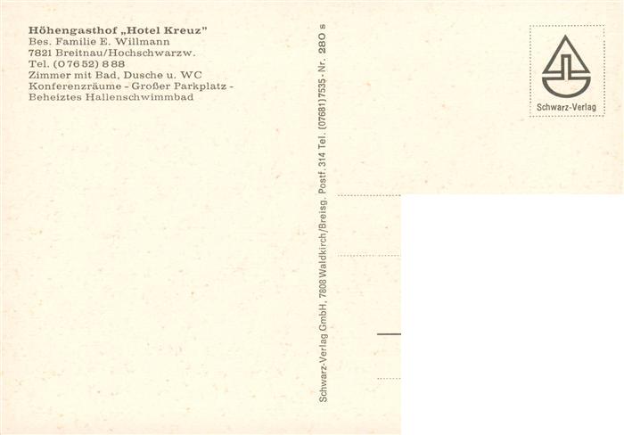 73886866 Breitnau Hoehengasthof Hotel Kreuz postalisch nicht gelaufen Erhaltung siehe scans [WerneD78] KatCode: 11110008315016