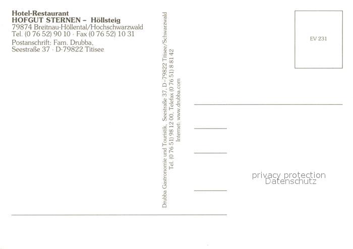 73611060 Breitnau Hofgut Sternen H?llental postalisch nicht gelaufen Erhaltung siehe scans [LiesaD40] KatCode: 11110008315016