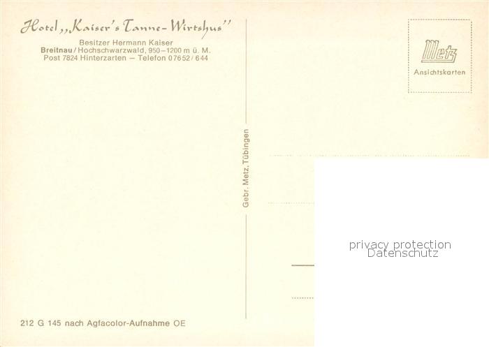 73743262 Breitnau Hotel Kaiser Tanne Wirtshus postalisch nicht gelaufen Erhaltung siehe scans [FriedD77] KatCode: 11110008315016