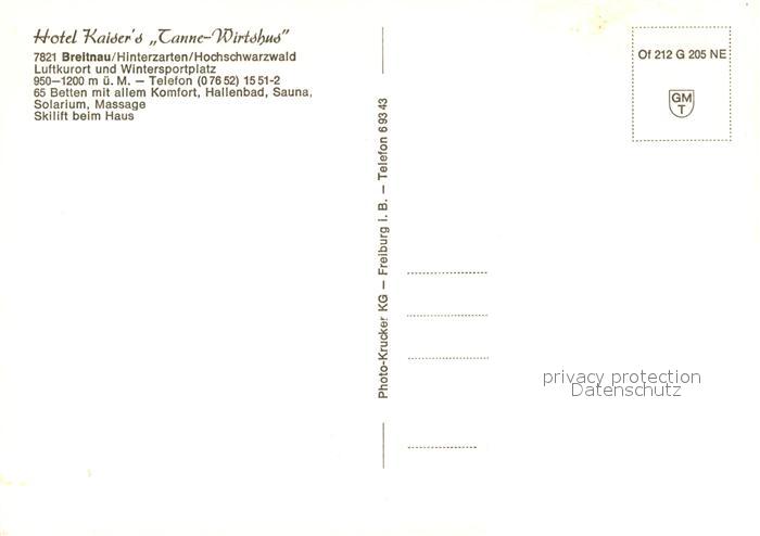 73608994 Breitnau Hotel Kaisers Tanne Wirtshaus Gaststube Hallenbad postalisch nicht gelaufen Erhaltung siehe scans [WerneD78] KatCode: 11110008315016