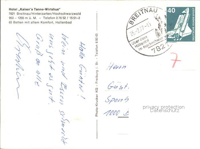 72468082 alte Postkarte Breitnau Hotel Kaisers Tanne Wirtshaus Hallenbad postalisch gelaufen Erhaltung siehe scans KatCode: 11110008315016