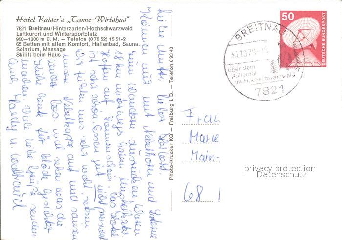 72061792 alte Postkarte Breitnau Hotel Kaisers Tanne Wirtshus postalisch gelaufen Erhaltung siehe scans KatCode: 11110008315016