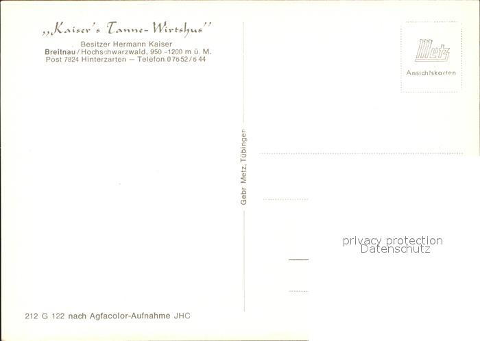 71832336 Breitnau Kaiser’s Tanne-Wirtshus postalisch nicht gelaufen Erhaltung siehe scans KatCode: 11110008315016