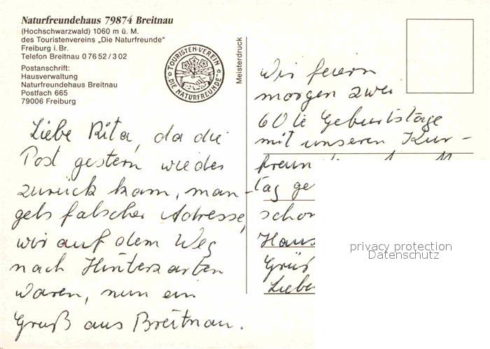 72667029 Breitnau Naturfreundehaus postalisch nicht gelaufen Erhaltung siehe scans [LiesaD40] KatCode: 11110008315016
