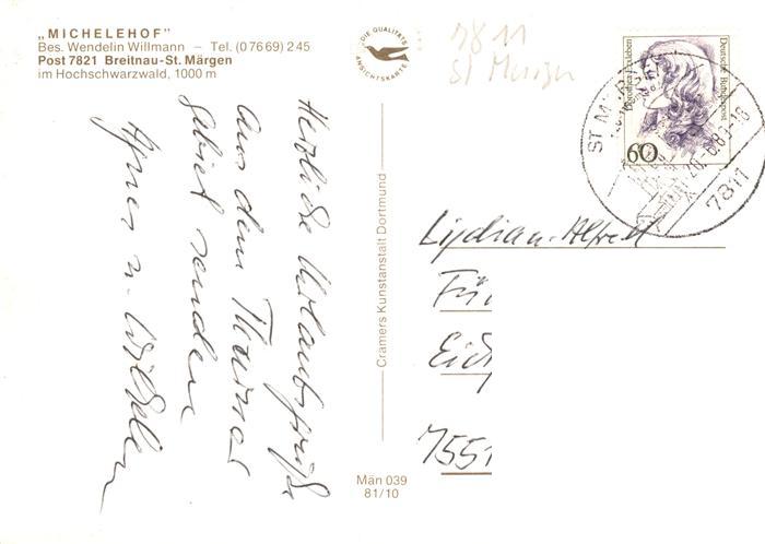 73929329 alte Postkarte Breitnau Schwarzwald Michelehof Gastraeume postalisch gelaufen Erhaltung siehe scans [FriedD77] KatCode: 11110008315016