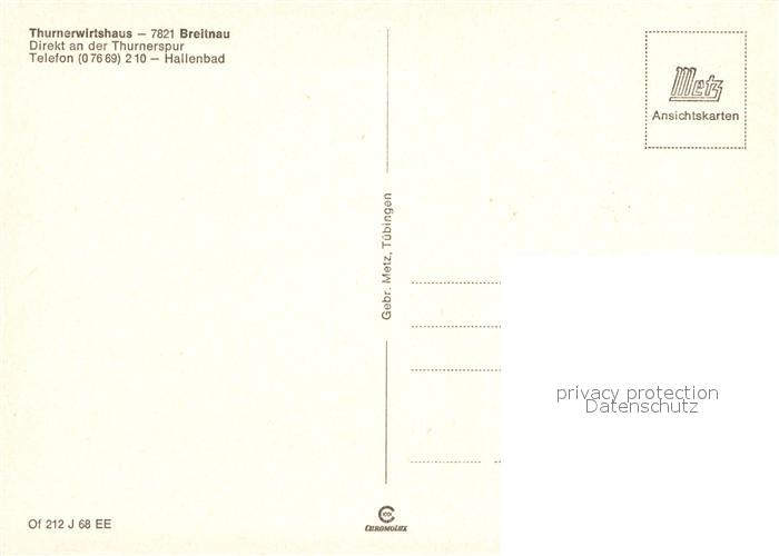 72965592 Breitnau Thurnerwirtshaus Thurner Spur Wintersportplatz Schwarzwald Skilanglauf Loipe postalisch nicht gelaufen Erhaltung siehe scans [FriedD77] KatCode: 11110008315016