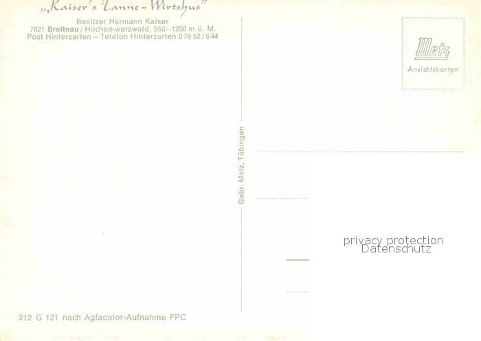72678664 Breitnau Wirtshaus Kaiser’s Tanne Restaurant Terrasse postalisch nicht gelaufen Erhaltung siehe scans [FriedD77] KatCode: 11110008315016