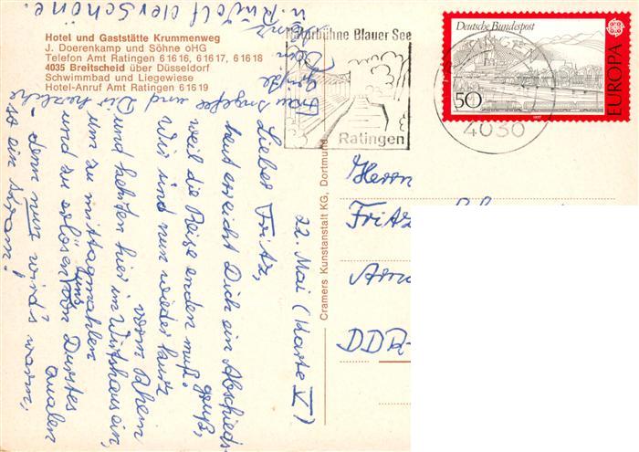 73883508 alte Postkarte Breitscheid Duesseldorf Hotel und Gaststaette Krummenweg postalisch gelaufen Erhaltung siehe scans [WerneD78] KatCode: 11110005111000