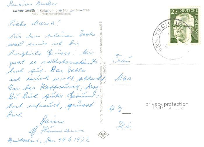 33216593 alte Postkarte Breitscheid Hessen Fliegeraufnahme postalisch gelaufen Erhaltung siehe scans [PaolaD17] KatCode: 11110006532004