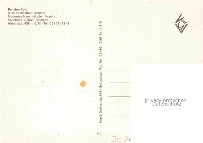 74005955 Breitscheid Hessen Pension Kolb Gastraeume Hallenbad postalisch nicht gelaufen Erhaltung siehe scans [WerneD78] KatCode: 11110006532004