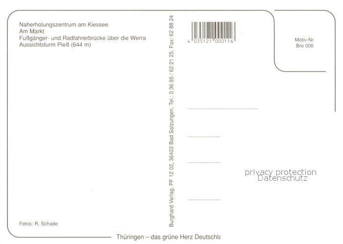 73266118 Breitungen Werra Naherholungszentrum Kiessee Markt Werrabruecke Aussichtsturm Pless postalisch nicht gelaufen Erhaltung siehe scans [FriedD77] KatCode: 11110016066013