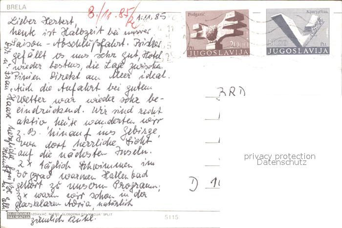 old postcard Brela postalisch gelaufen Erhaltung siehe scans
