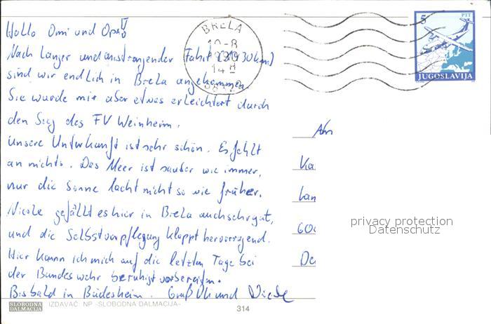 old postcard Brela Hafen postalisch gelaufen Erhaltung siehe scans