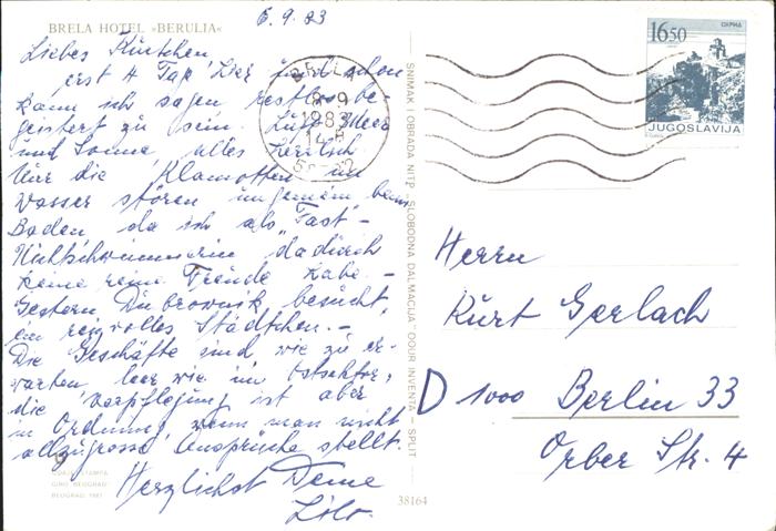 old postcard Brela Hotel Berulia Strand Fliegeraufnahme postalisch gelaufen Erhaltung siehe scans
