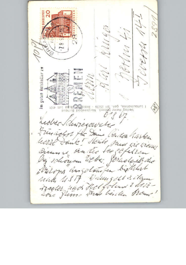 31122742 Bremen postalisch nicht gelaufen KatCode: 11110004011000